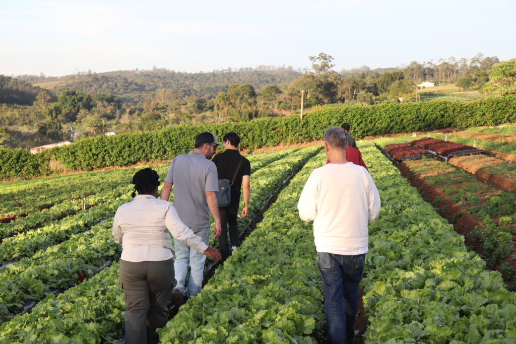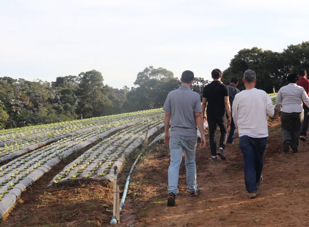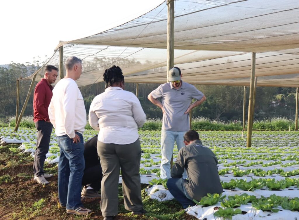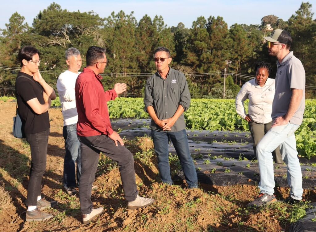 A comitiva percorreu propriedades de produtores locais com o objetivo de trocar experiências, analisar os sistemas de cultivo e fortalecer parcerias internacionais.